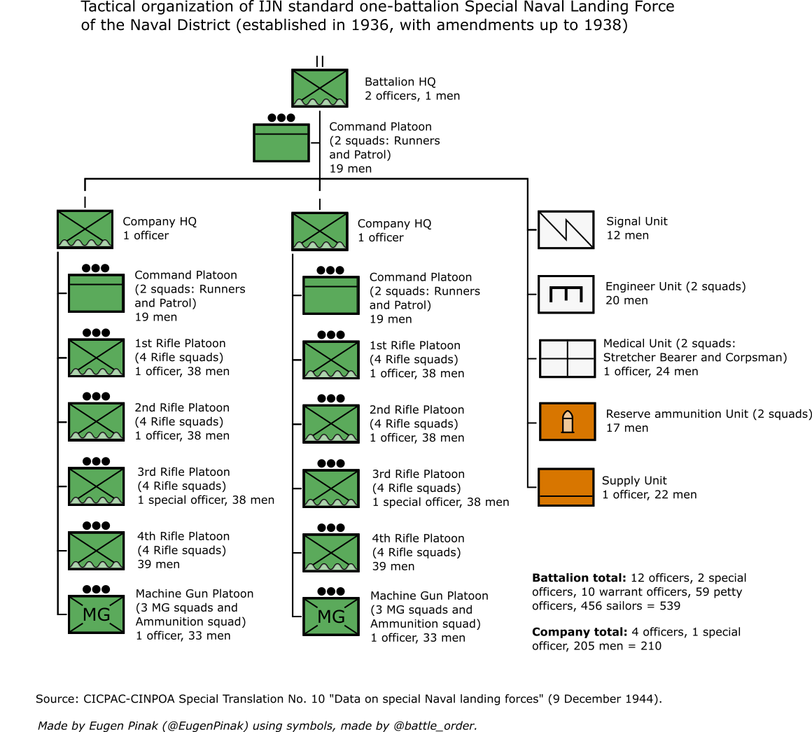 Note, that IJN administarive tables of organization had little information about actual units' organization, so only OOB and table of SNLF's tactical organization (below OOB) are given here.