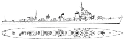 (1943-45) 4-5”/50cal, 22-25mm, 9-24” torpedo tubes Crew: 238